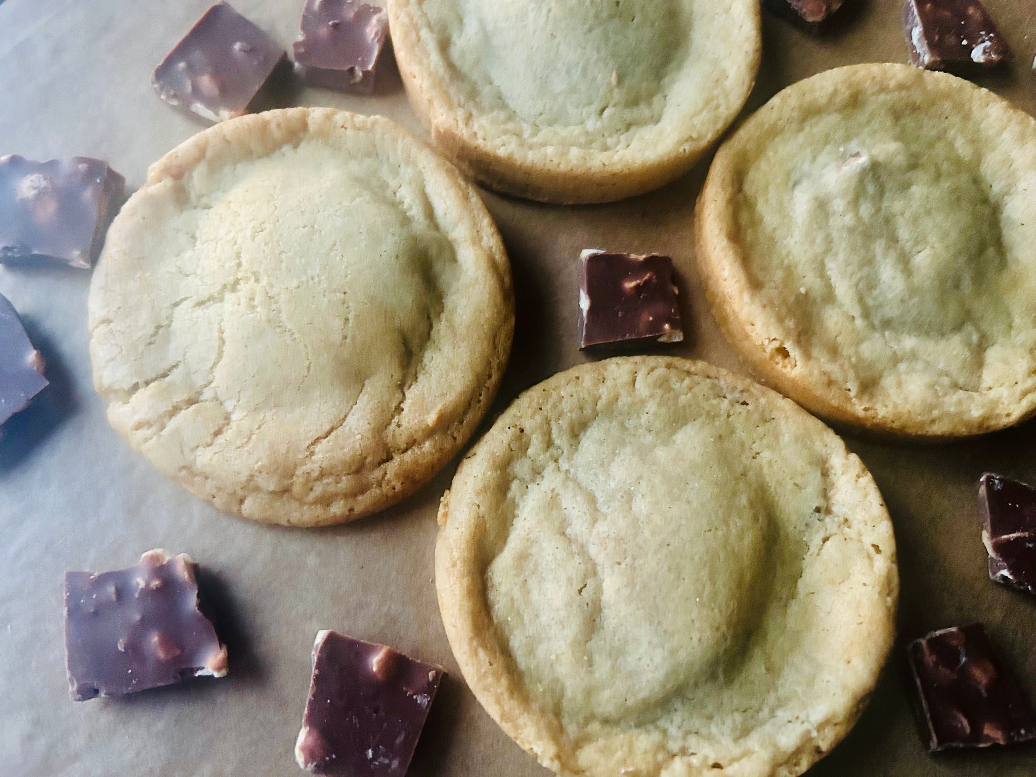 In Richard's honor, here is an all American cookie dough filled with remixed & refined nostalgia. Our chocolate chip base dough makes the perfect host for a filling of chopped hazelnut studded milk chocolate (gifted to us from a rescued food load by Columbus Food Rescue, a division local food justice organization Local Matters) melted with organic virgin coconut oil to create a fancy play on an almond joy filling. Fancy in a humble and welcoming host.
