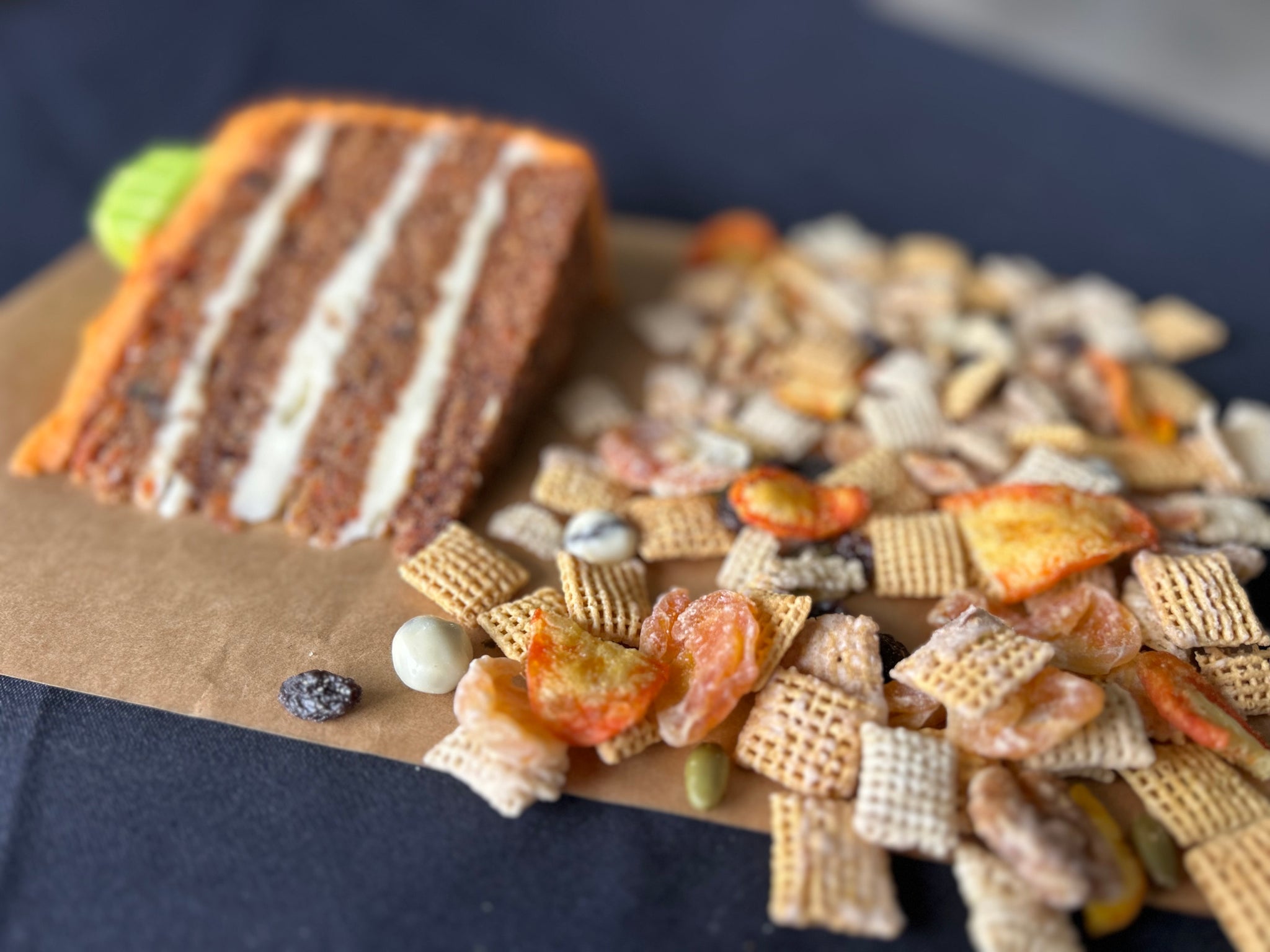 The treat we've designed in her honor actually pays tribute to another great love of her life, cooking. Morrison was known as a masterful, if not secretive cook. And she was best known for one of the most amazing carrot cakes this side of glory. Unfortunately for all of us, she took the recipe to the great beyond with her. Our tribute comes in deconstructed form. We've used the elements of an amazing carrot cake, crisp dried carrots, organic raisins, toasted walnuts, dried mandarins (not pineapples; Dee is allergic), warm spices, a bit of cream cheese powder, and turned them into a snack mix that is sure to create a love affair on the tongue and in the belly.